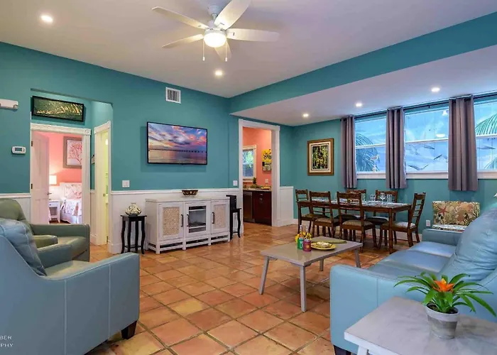 Situated only 0.6 km from Duval Street, Summer Solstice By Last Key Realty Villa offers guests to relax by a swimming pool. Located only a short drive from Key West Aquarium, the 10-bedroom villa provides Wi-Fi and parking.